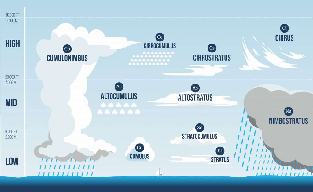 This illustration shows where in the atmosphere the various cloud formations will be.