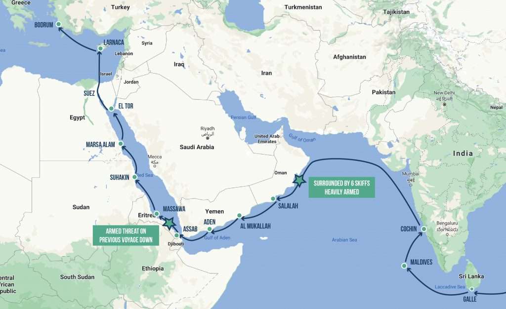 All was well until they were off Oman, then the nightmare they had all feared unfolded when they were surrounded by six pirate skiffs.