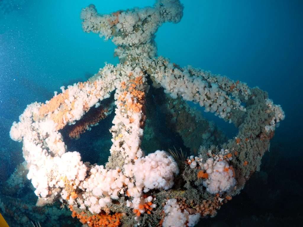 After more than 20 years on the sea bed, she has been fully claimed by the sea now. Her encrusted decks sit upside down and twisted in the cool waters of the Atlantic, home now to cuckoo wrasse, seals and every colour of anemone you could ever imagine.