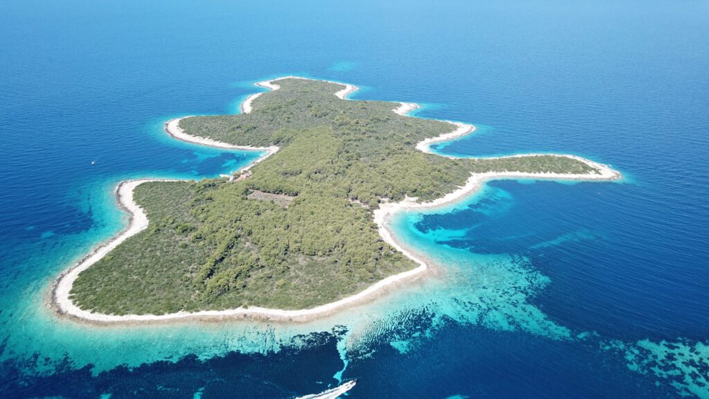 Proizd, some two miles to the west, is a small island with crystal clear waters, but it is more of an afternoon stop off rather than an overnight anchorage. There is a narrow strait between Korcula and Proizd. I only ever stayed there on pristine summer days when I was working as a charter skipper, but it’s clear from a scan of the chart that swell will be an issue in some weathers due to a lack of protection. Sailing through is quite unnerving as the water is so clear you feel certain you must touch the bottom even though there is actually plenty of depth. I used to drop the hook here, prepare lunch and then let the guests go swimming in the limpid water and take a nap while the cooling breeze fanned through the channel. There is a nice beach nearby on Proizd.