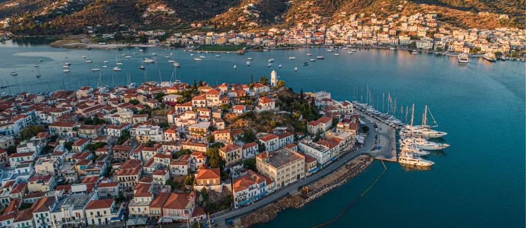 As you approach, the first thing you will spot is the iconic 1927 clock tower which stands at the highest point. We would recommend walking up to take in the magnificent views at sunset before heading back into the town for dinner. There is plenty of choice when looking for a restaurant, especially when looking for fresh seafood. From here you can explore the many bays the islands have to offer and it is a stone’s throw to the ancient Corinth Canal, just over 30NM to the north-west. Due to its vicinity to Athens, it’s a good spot to meet family and friends who fly in and can jump on a ferry to the island.