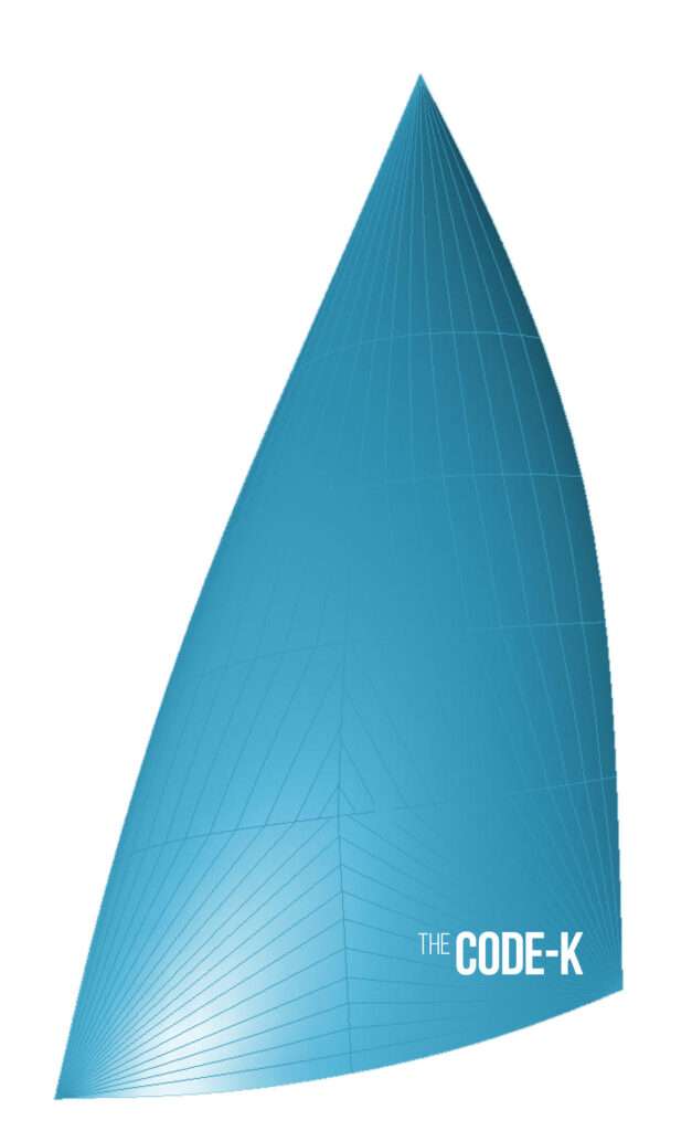 Code Sails are flatter than asymmetric spinnakers or symmetric spinnakers.They are either set or furled, they cannot be partially furled.  This is a free flying sail that is half way between a genoa and a cruising chute, both in shape and weight. It is an all purpose sail used for running reaching and going upwind in light airs, has a fixed tack ideally attached to a sprit to give it clean wind and has a single sheet attached to the clew.