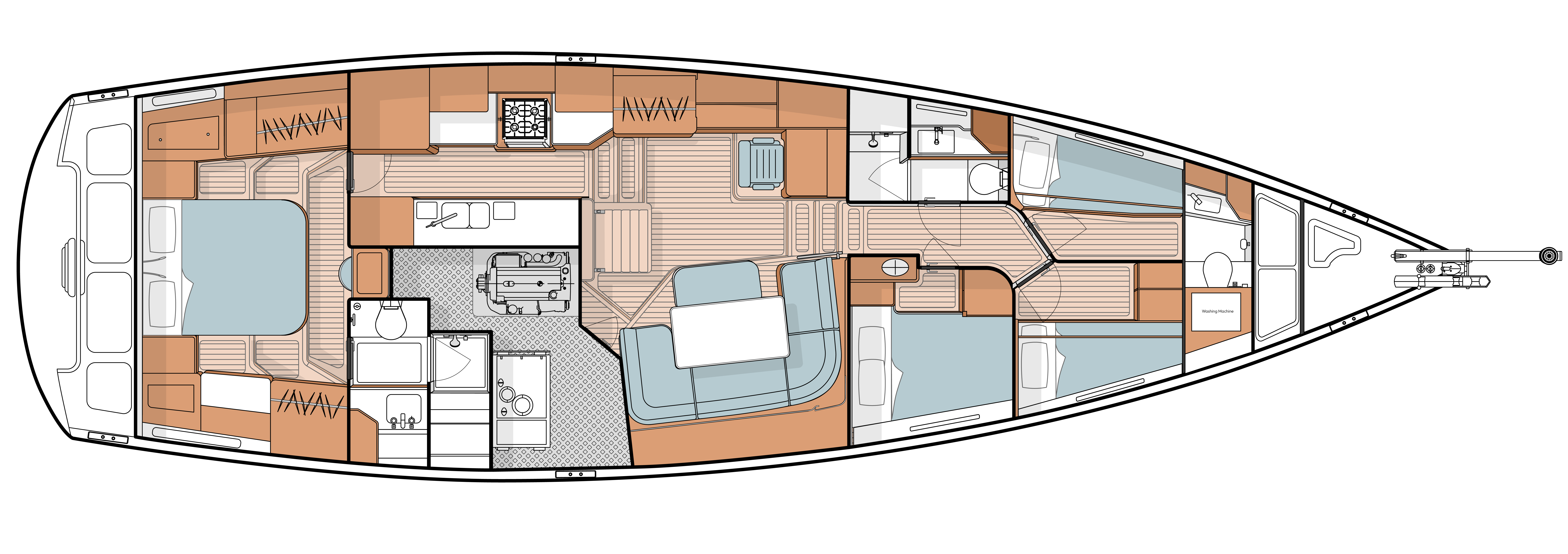 The perfect rig for all points of sail and wind strengths. All sail setting, trimming and furling can be done by one person from the safety of the cockpit, making it the rig of choice for short handling long distance cruising.