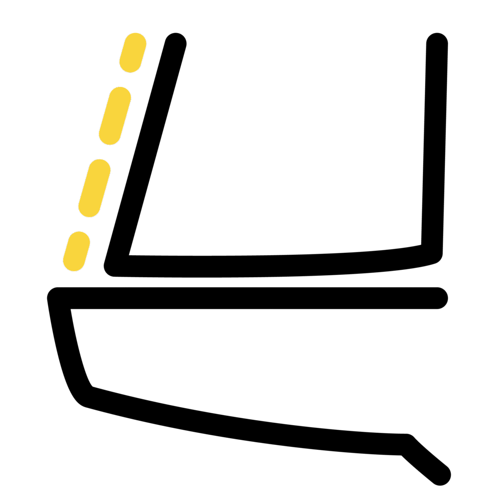 A deep concave moulded bulwark makes for a solid foothold when working on deck in heavy weather.