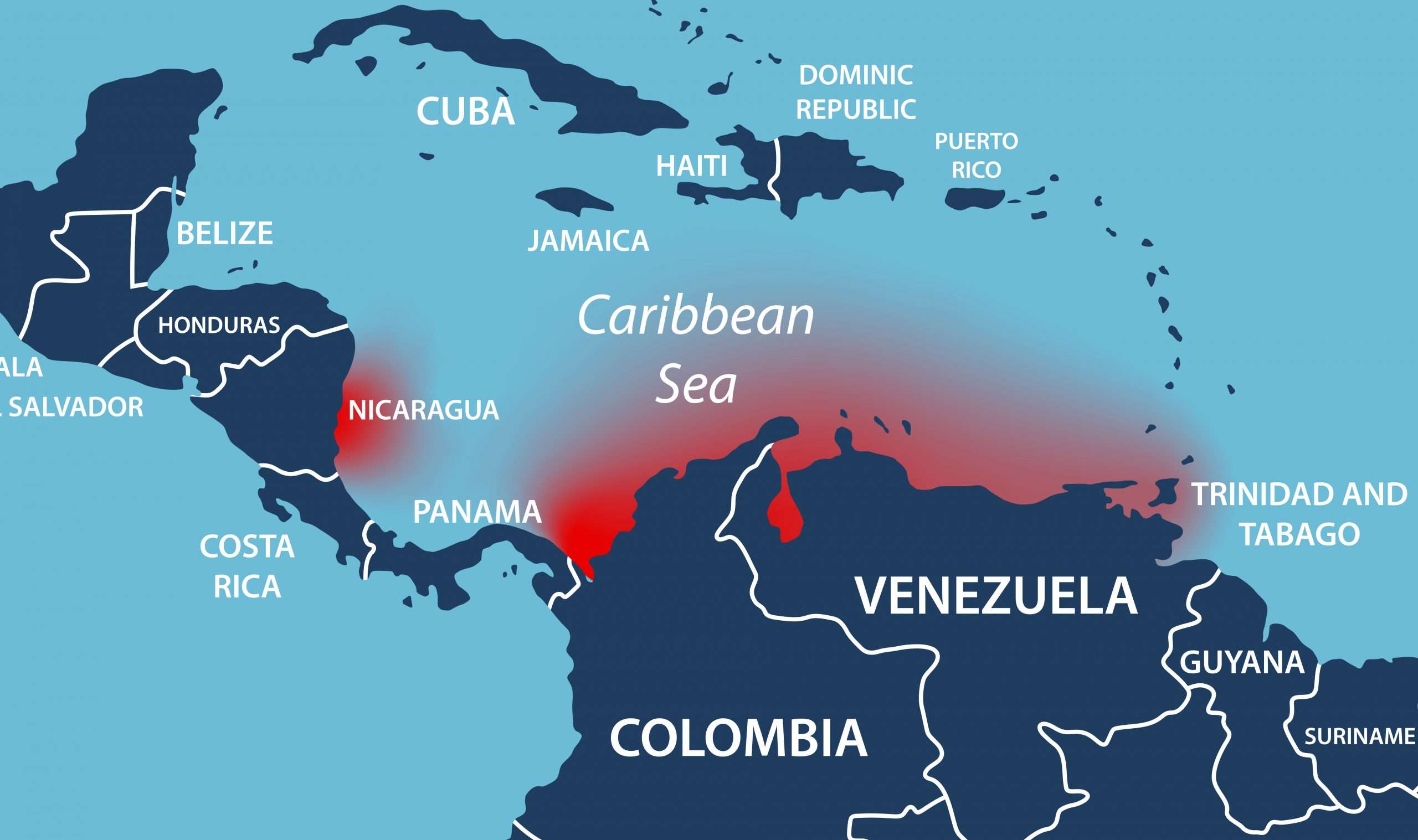 The highest consistent risk in this region is around Panama.