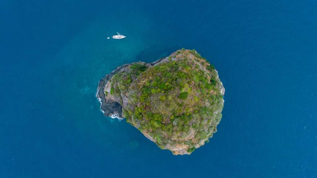 On day two, the crew decided to go on a dive in the morning before the wind got up. Dick had his sights on a small island (Nosy Kivinjy) which he considered would be a good spot for a wall dive. Deciding to stay onboard, I flew the drone high over the yacht and island, the overhead perspective providing some idyllic shots.