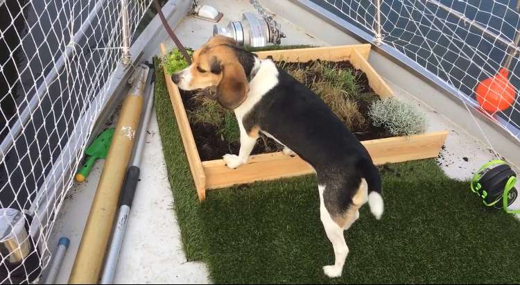 After a few weeks of trial and error, we discovered that using a fake-grass mat on the bow of the boat is the best option for onboard potty training. You don’t have to place yours on the bow but be sure to establish a spot that your dog knows is the “place to go.” When we are at sea and conditions are not safe for the beagles to go to the bow to potty, we have a spare fake-grass mat that we put in the cockpit.