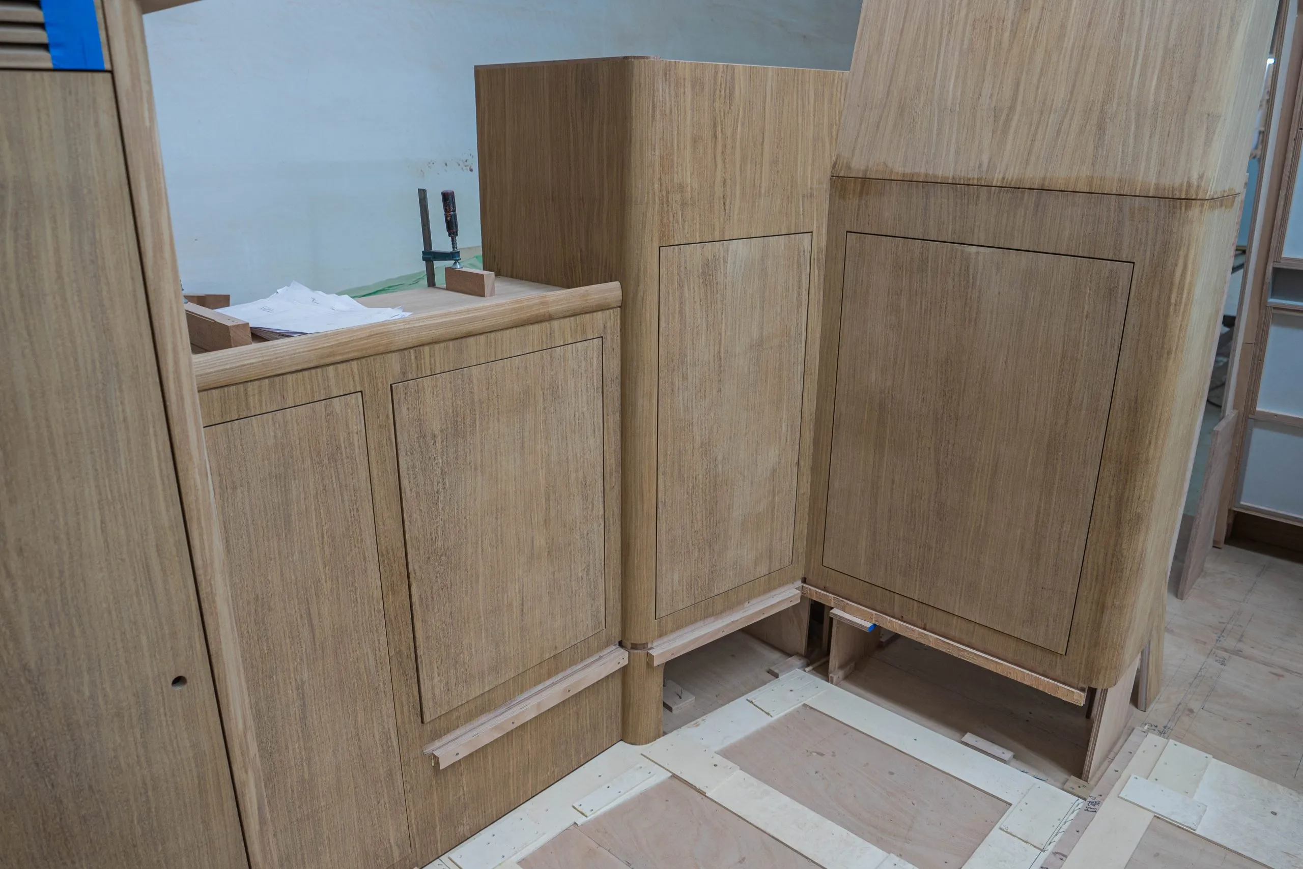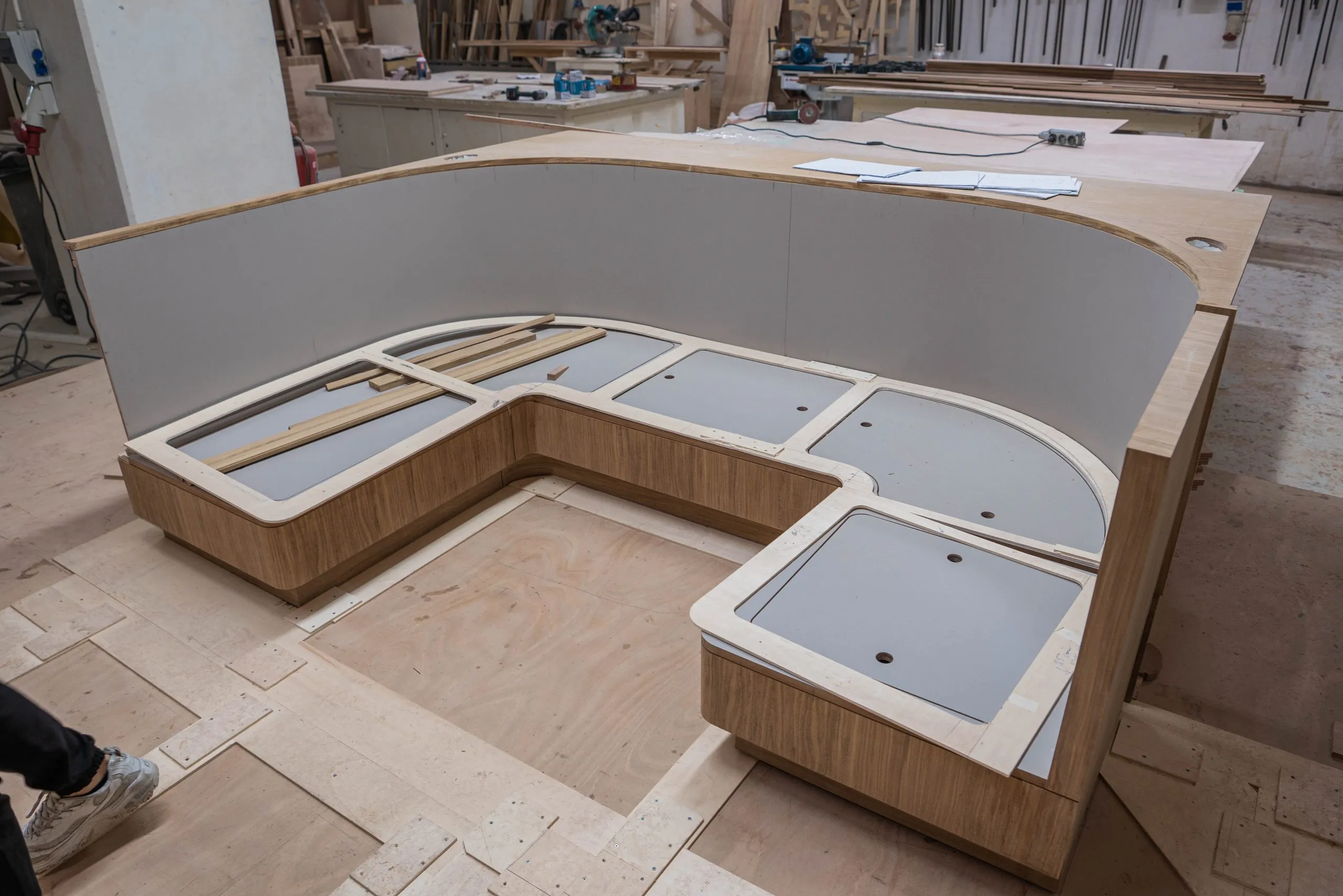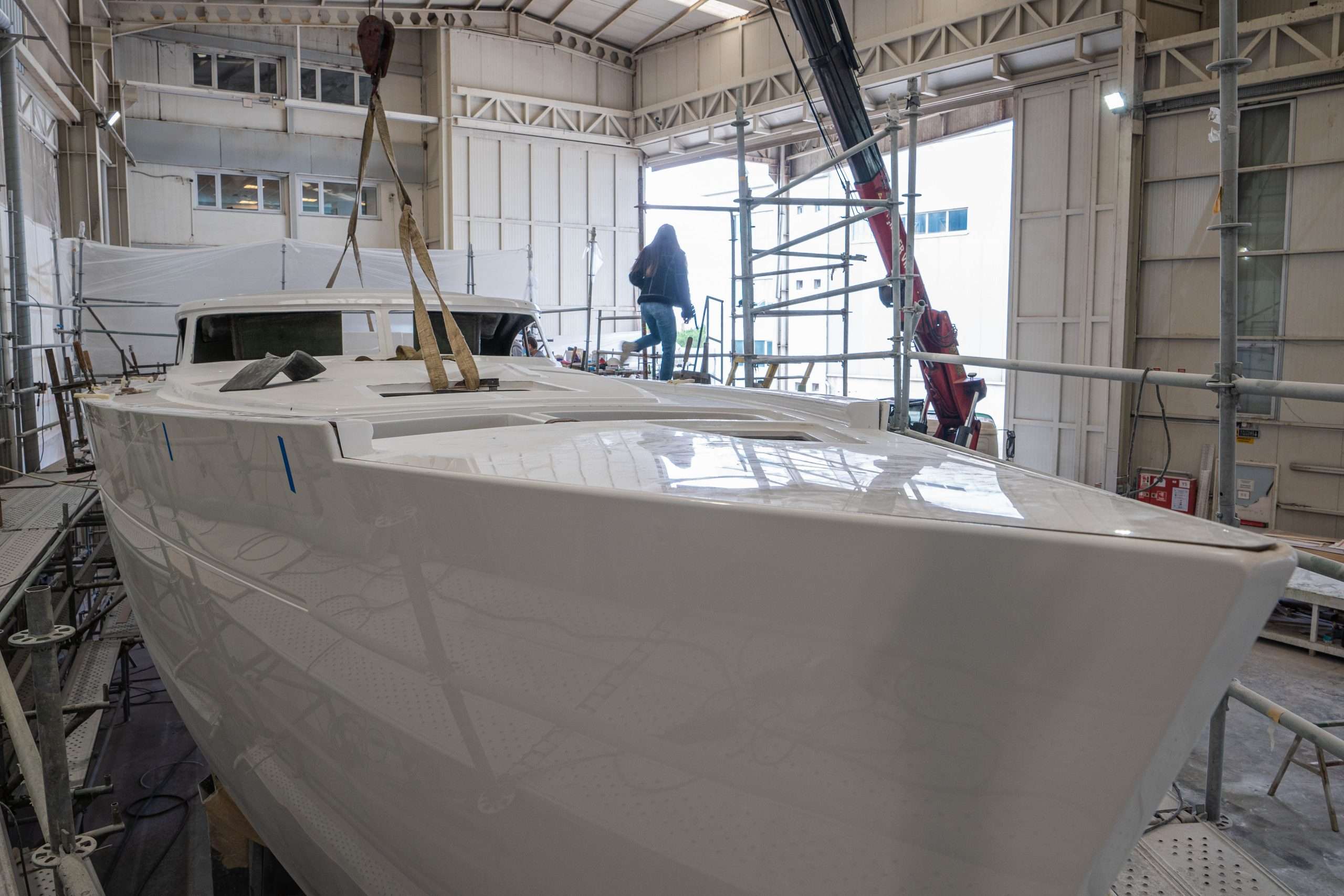 The structural stringers and frames are again cut from structural foam and laminated into place. This is a very different approach to most production yachts of today which use a one-piece skeleton that is bonded to the hull. Each structural element in a Kraken yacht is laminated in place and our transverse frames extend from the chainplates all the way to the keel base to distribute keel and rig forces. This provides the ultimate structural integrity.