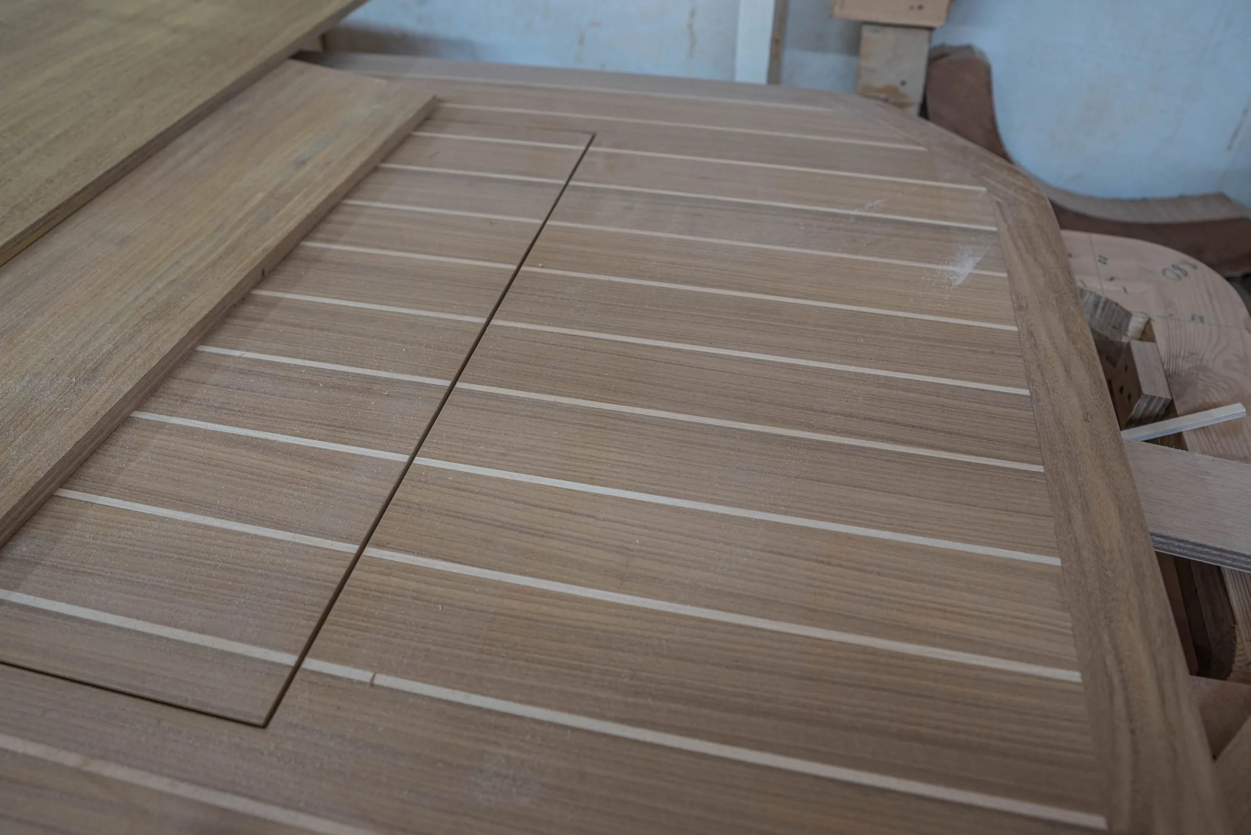 The deck is now laid, the stainless stanchions, deck gear, hatches and windshield are all in place. A water test needs to be performed overnight to ensure there are no leaks. We run a long term soak test and pressure test over a 12 hour period to ensure there are no leaks to the interior of the yacht.