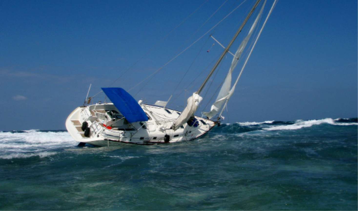 Fortunately, the crew was picked up safely by a passing dive boat that had just started their trip and was meant to be underway for another week. We are 13 NM from their location so Edith and I offered the owner to pick them up on our route, which is planned for the next day as it was already too late to set sail. Our offer was received with enthusiasm so the next day, together with another yacht, we sailed by to pick up the crew. The wind is blowing hard and the reef is in the middle of the open sea. When we arrive the next day the situation is clear. The Panta Rhei is above water, fifty meters on the reef and is lost. Waves crash on the yacht and moments later we hear the stories from the emotional crew. Totally in shock, they don’t want anything to do with the yacht anymore and want to leave. Before we do, we take our dinghies, doing two trips to the yacht to recover whatever we can use. We get the diesel and petrol off board and try to get some personal belongings from the wreck. It’s dangerous and we can’t stay there too long. The drama touches us, in any case, it is clear that one yacht will not reach its final destination.