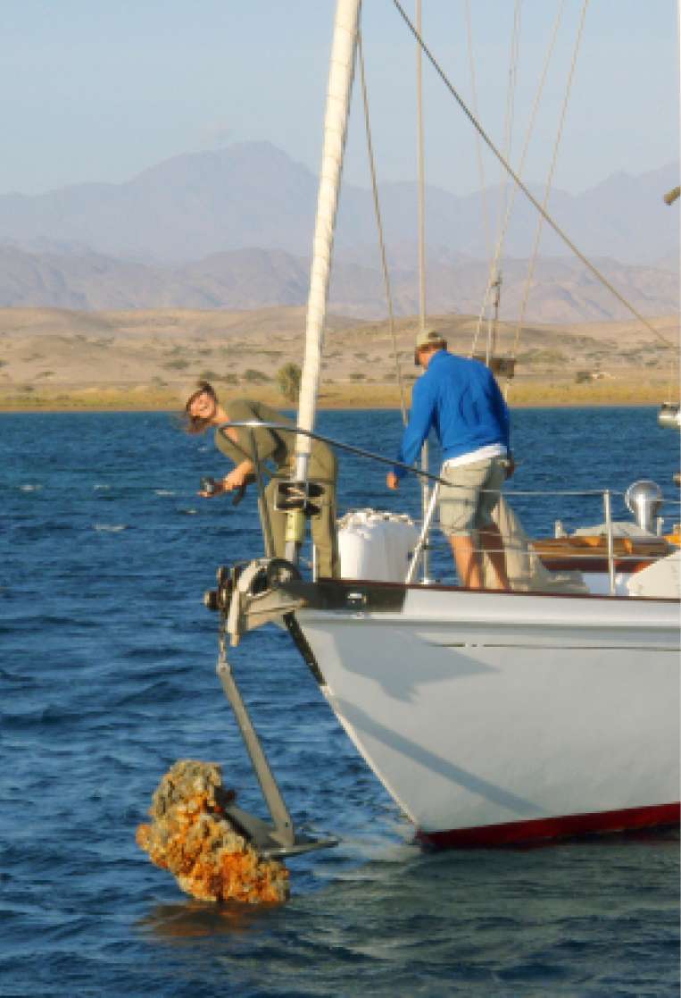 We want to leave. Enough Egypt! We are now disturbed by all the scams so Sudan is a good proposition. We decided to cover the 260 miles sail to Sudan in one go. Sailing in the Red Sea is not just a ‘day out’. It is a difficult sea with many reefs, currents, strange short waves and a lot of wind. For now, the wind is still straight from our backs, so that’s not too bad. We sail for two days with the 16 yachts and with relatively few problems. Our chartplotter and radar are working great. We enter the first undisputed Sudanese bay, ‘Marsa’. Due to border conflicts, we decide to sail more than twenty miles further than where the actual border is on the map. We consciously do not seek out any problems with military personnel who are present everywhere.