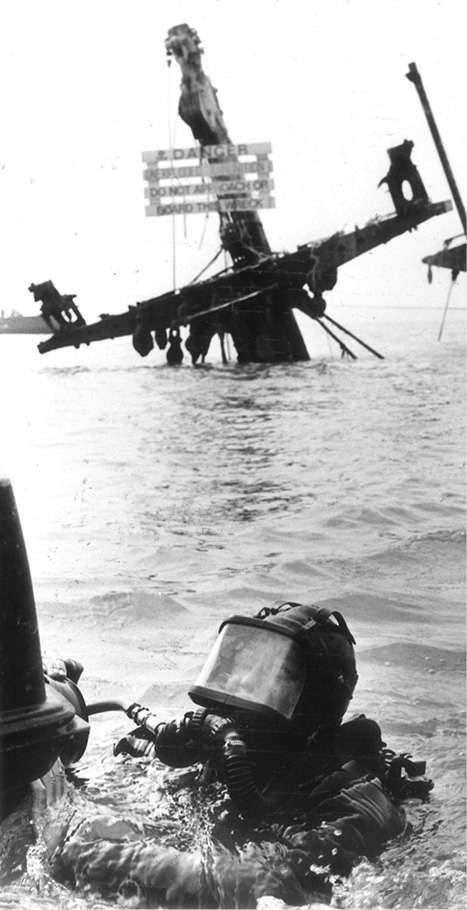 The wreck lies just a mile off Sheerness in about 50 feet of water. She has been there since grounding in August 1944 while awaiting orders to join a convoy bound for Cherbourg to supply the Allies following the Battle of Normandy.